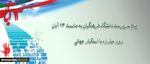 امتیاز دهید : پیام دکتر مهرمحمدی، سرپرست دانشگاه فرهنگیان به مناسبت سیزده آبان 2 چهارشنبه 13 آبان 1394 ساعت 14:13