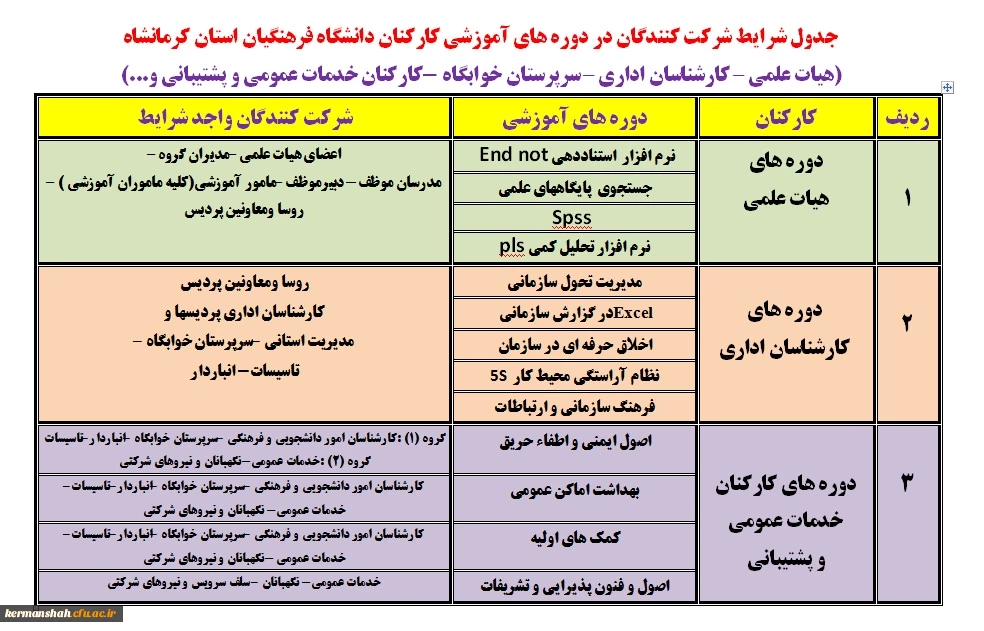 برنامه و جزئیات برگزاری دوره های آموزشی کارکنان (اعضای هیات علمی و اداری) 2