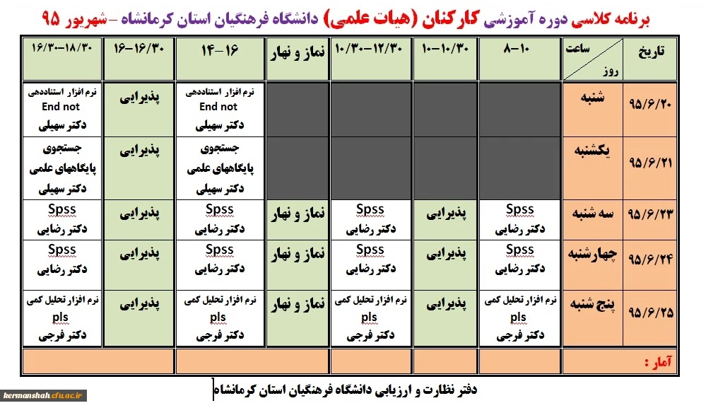 امتیاز دهید : اطلاعیه برنامه و جزئیات برگزاری دوره های آموزشی کارکنان (اعضای هیات علمی و اداری) 3 یکشنبه 14 شهریور 1395 ساعت 8:53