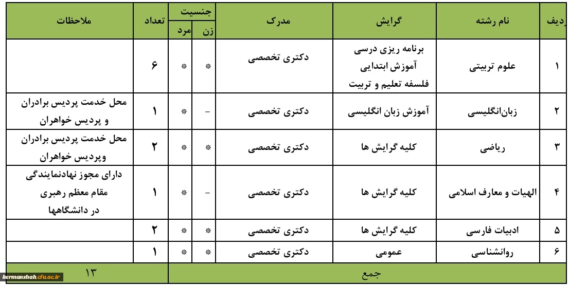 اطلاعیه فراخوان همکاری دبیران دارای مدرک دکتری تخصصی (ph.D) جهت ماموریت آموزشی در دانشگاه فرهنگیان کرمانشاه 2
