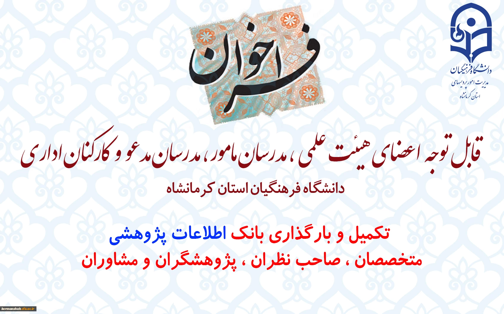 فراخوان جمع آوری اطلاعات متخصصان ، صاحب نظران ، پژوهشگران و مشاوران 2
