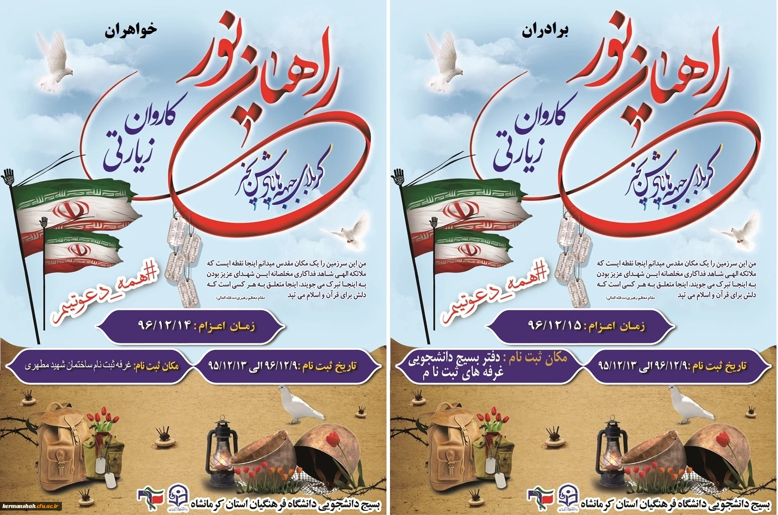 امتیاز دهید : ثبت نام اعزام کاروان راهیان نور دانشجو معلمان خواهر و برادر آغاز شد. 4 یکشنبه 13 اسفند 1396 ساعت 13:43