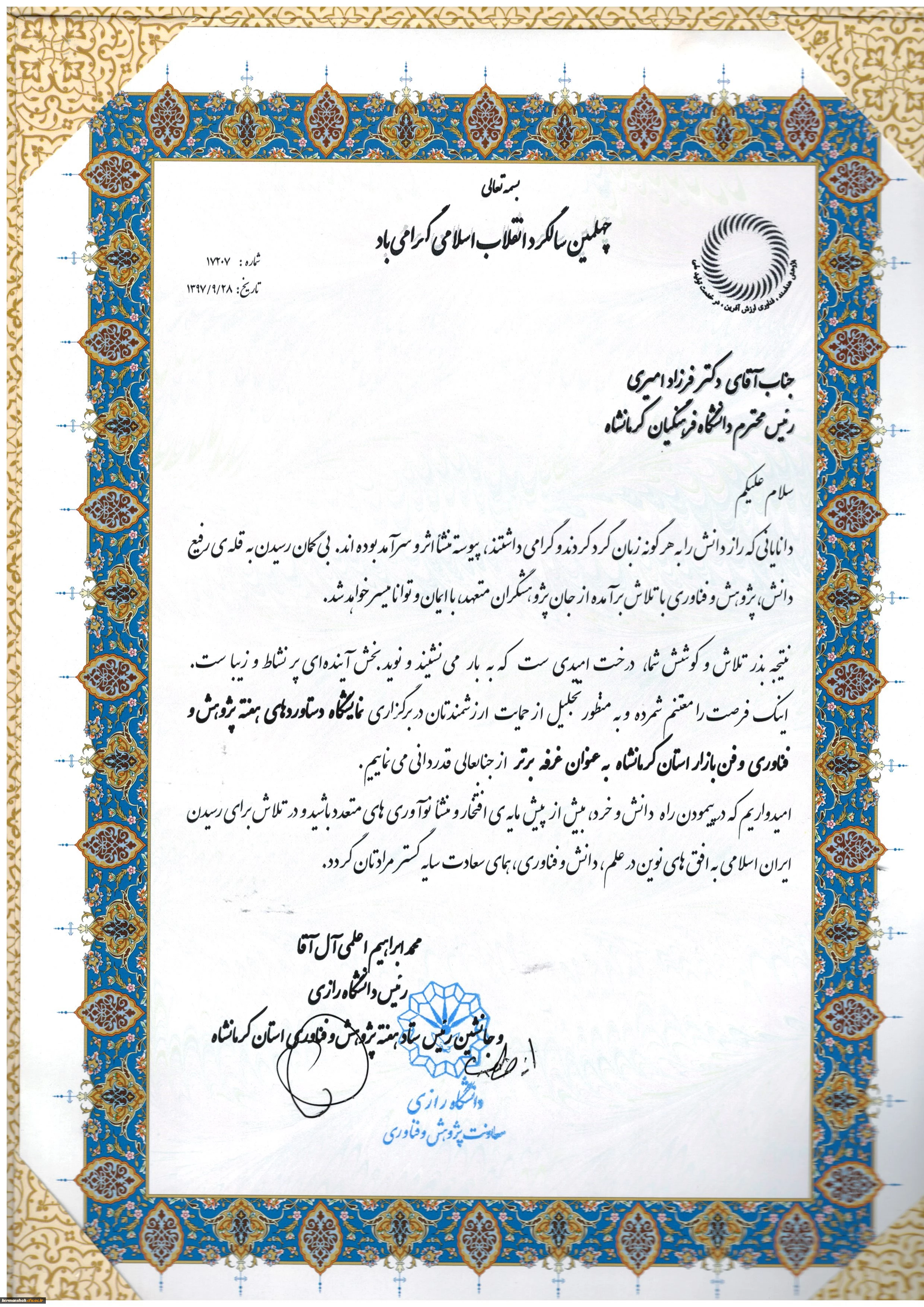 غرفه دانشگاه فرهنگیان استان در نمایشگاه دستاوردهای هفته پژوهش به عنوان رتبه برتر انتخاب شد 4