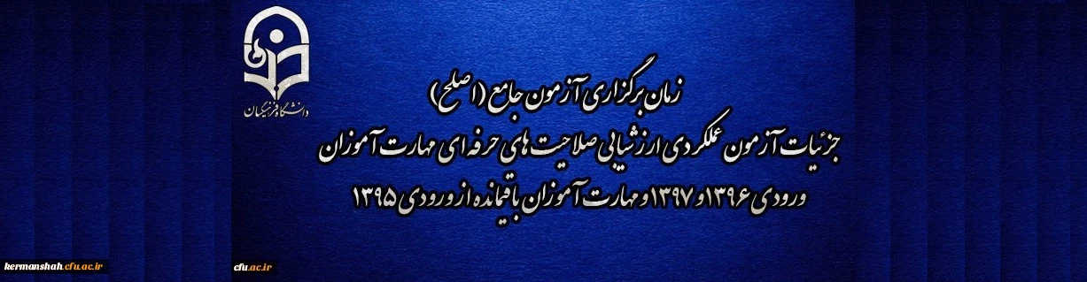 اطلاعیه شماره 2 مرکز سنجش شایستگی های منابع انسانی دانشگاه فرهنگیان: زمان برگزاری آزمون جامع (اصلح) جزئیات آزمون عملکردی ارزشیابی صلاحیت های حرفه ای مهارت آموزان ورودی 1396 و 1397 و مهارت آموزان باقیمانده از ورودی 1395 2