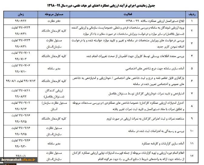 امتیاز دهید : ابلاغ بخشنامه ارزیابی عملکرد سالانه اعضای غیر هیأت علمی دانشگاه فرهنگیان 4 یکشنبه 6 مهر 1399 ساعت 10:17