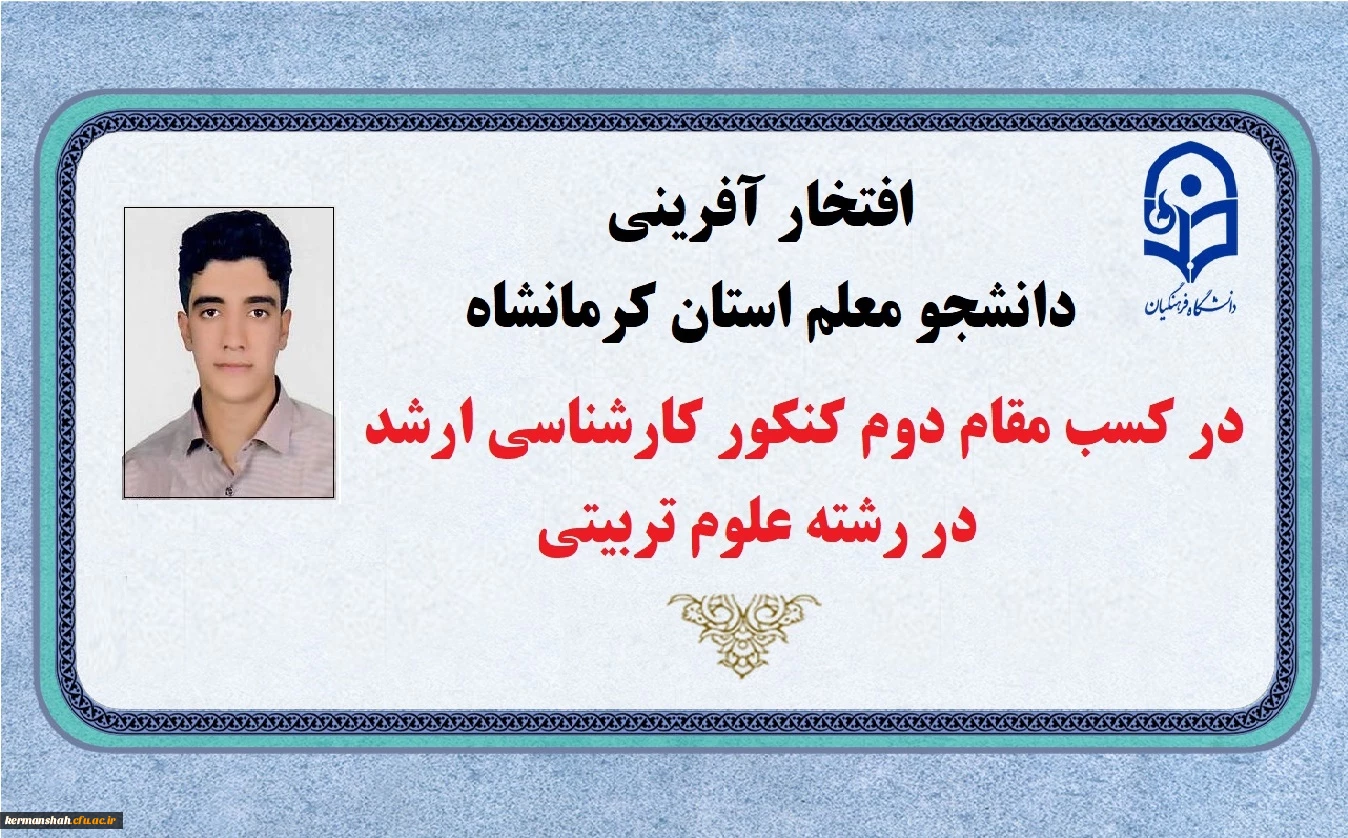 افتخار آفرینی دانشجو معلم استان کرمانشاه در کسب رتبه دوم کنکور کارشناسی ارشد رشته علوم تربیتی 2
