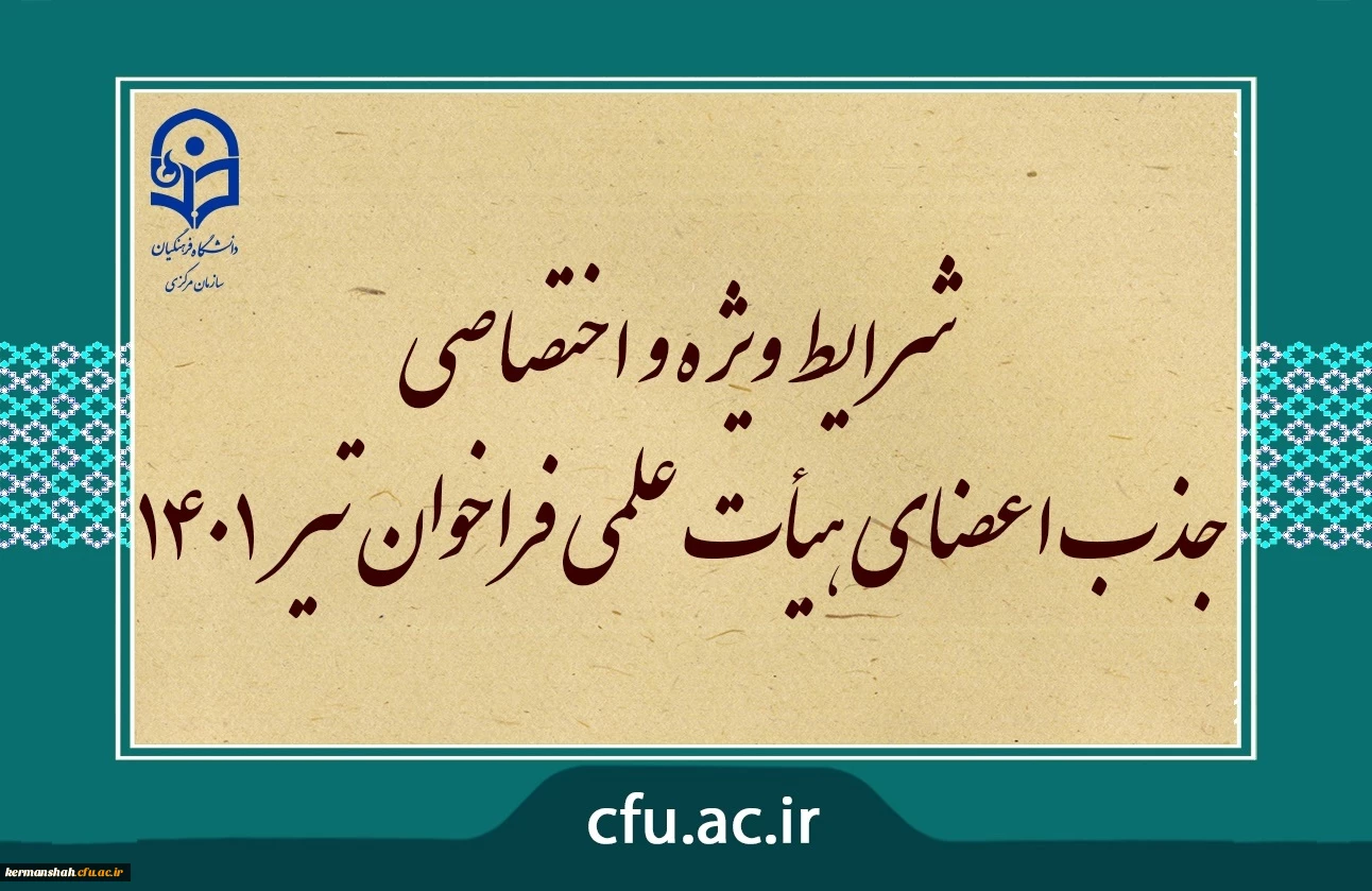امتیاز دهید : شرایط ویژه و اختصاصی جذب اعضای هیأت علمی فراخوان تیر 1401 2 یکشنبه 2 مرداد 1401 ساعت 11:42