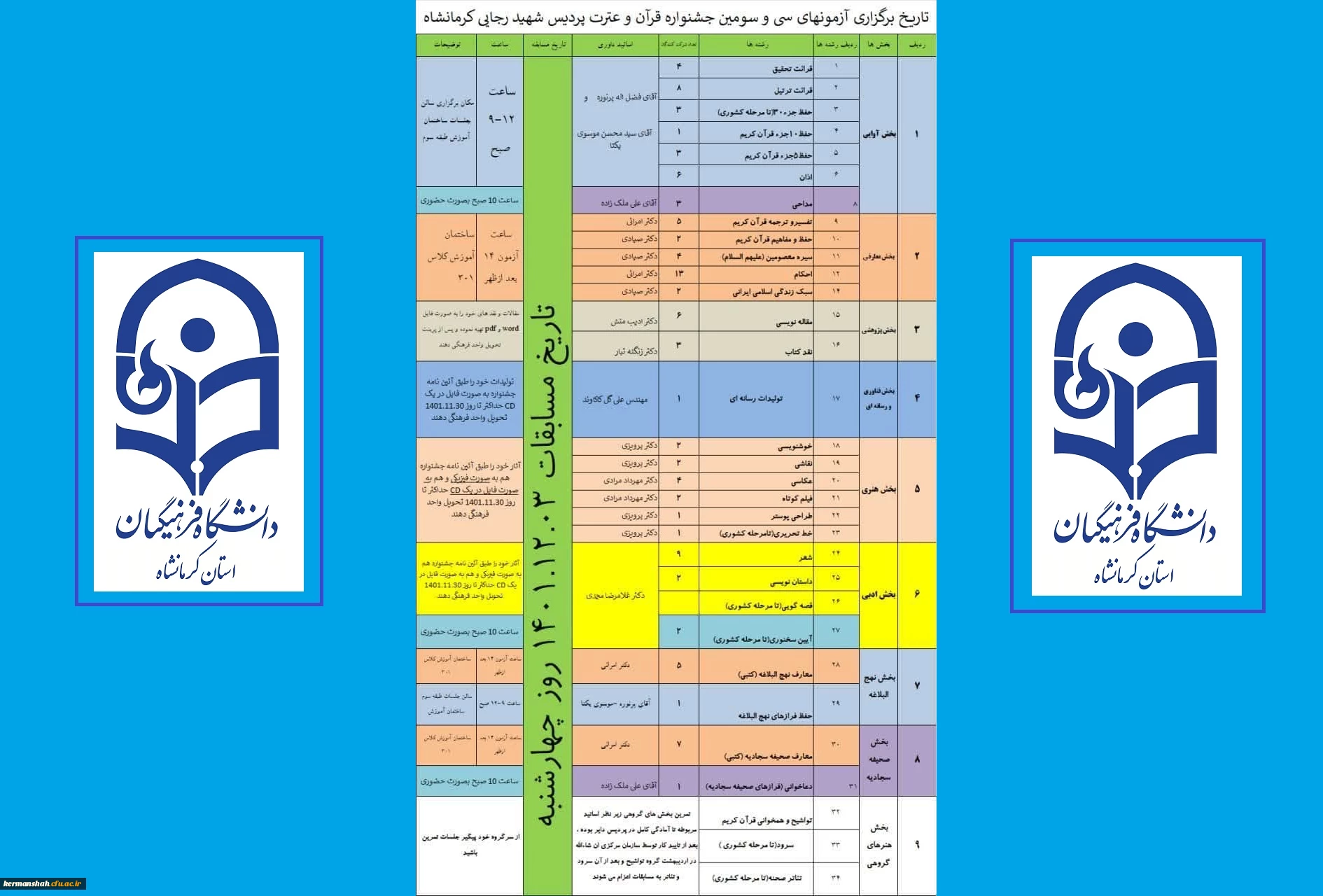 امتیاز دهید : برگزاری مسابقات جشنواره قرآن و عترت در پردیس شهید رجایی کرمانشاه 2 چهارشنبه 3 اسفند 1401 ساعت 10:03