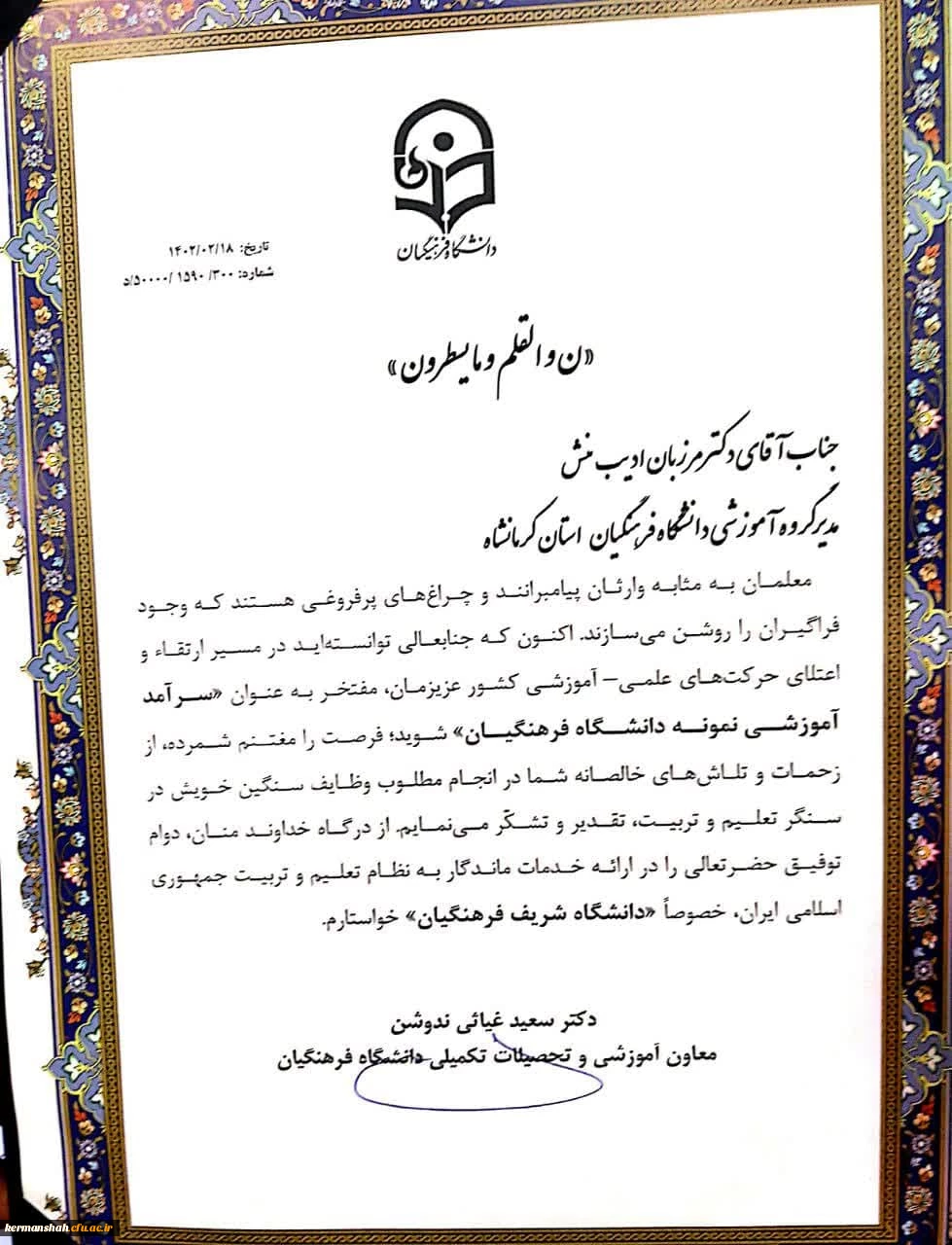 افتخاری دیگر برای دانشگاه فرهنگیان کرمانشاه 4