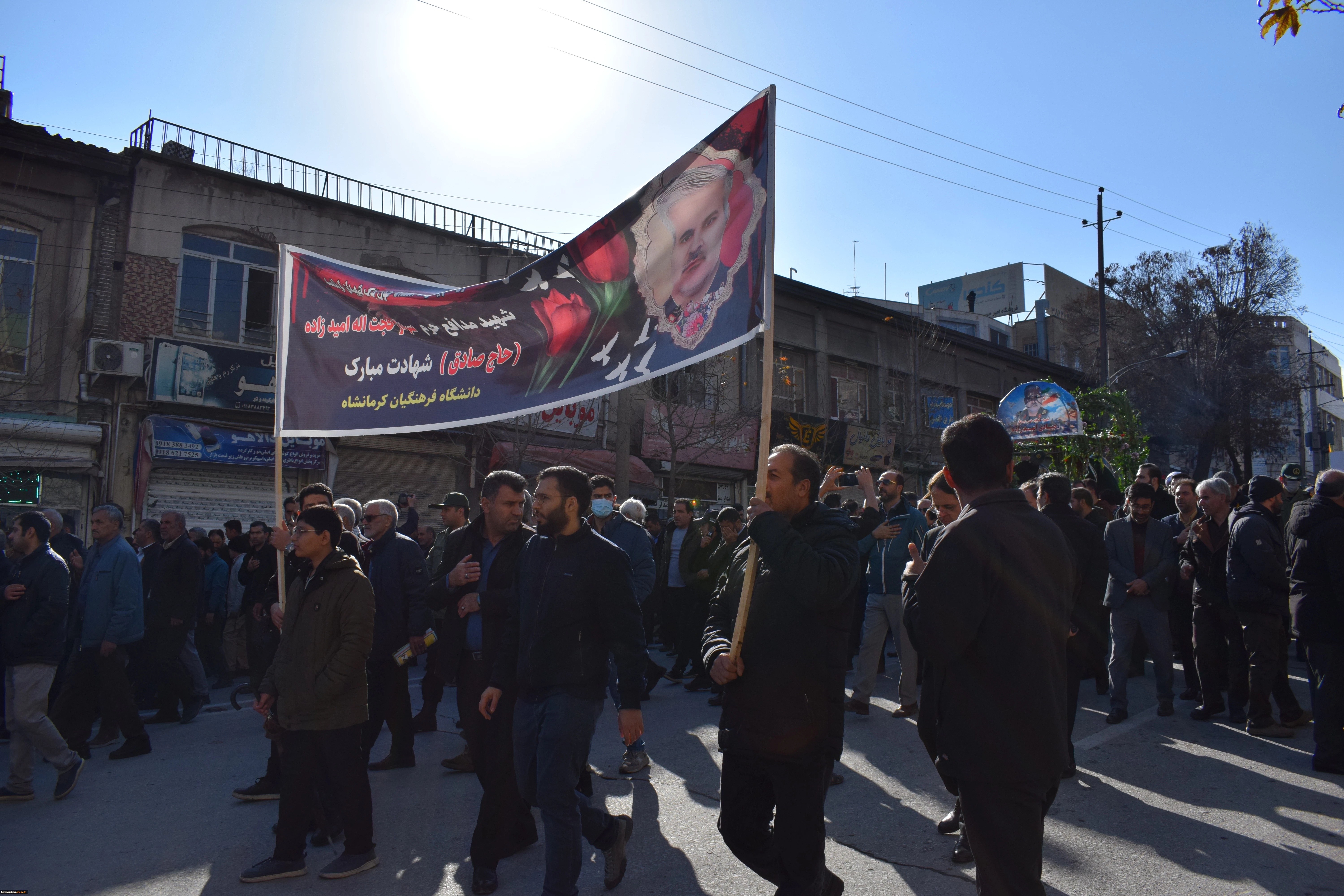 مراسم تشییع پیکر مطهر شهید مدافع حرم سردار حجت الله امیدوار(حاج صادق) با حضور مسئولان دانشگاه فرهنگیان کرمانشاه برگزار شد 2