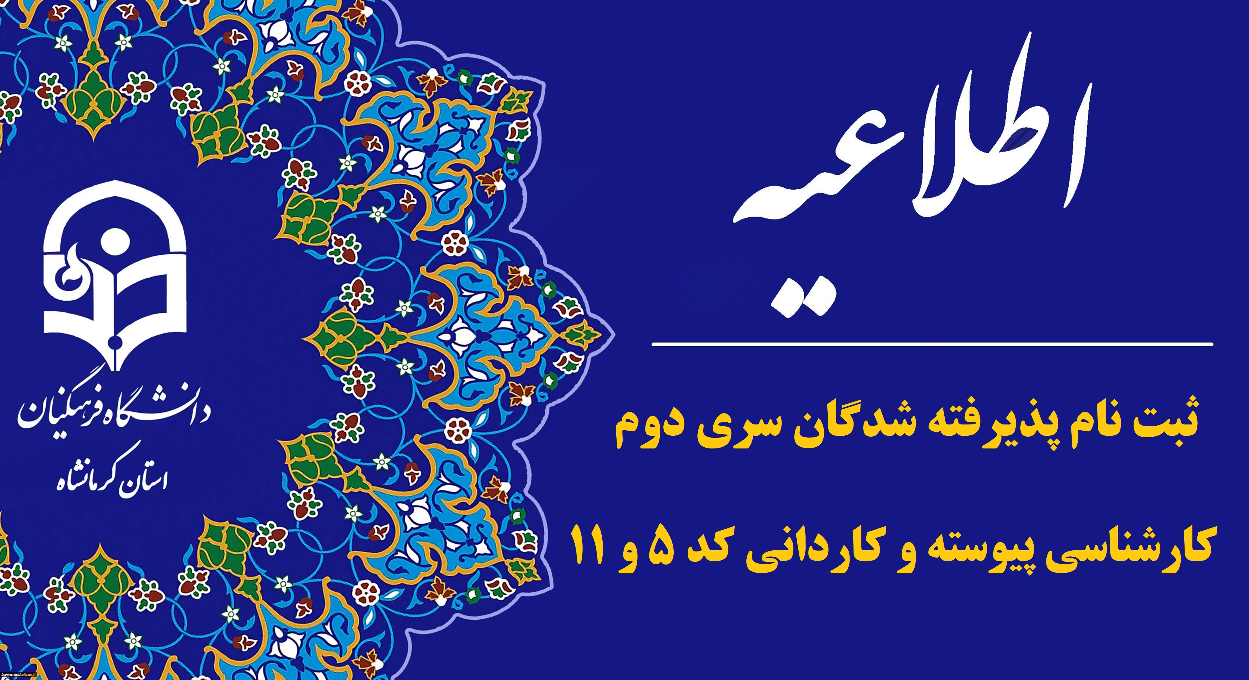 اطلاعیه جهت ثبت نام حضوری از پذیرفته شدگان سری دوم کارشناسی پیوسته و کاردانی کد 5 و 11 سال 1402 دانشگاه فرهنگیان 2
