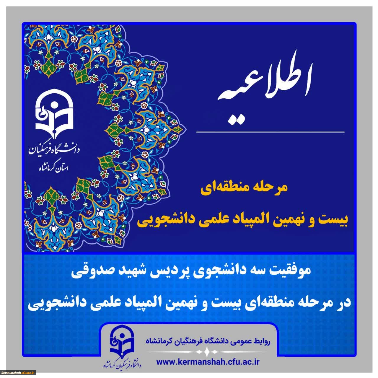 درخشش دانشجو معلمان پردیس شهید صدوقی در مرحله منطقه ای بیست و نهمین المپیاد علمی دانشجویی 2