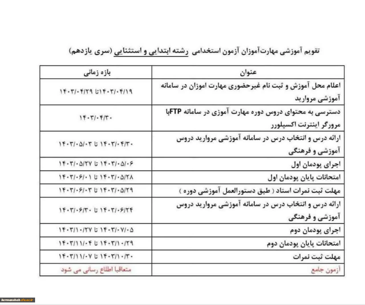 اطلاعیه مهارت آموزان پذیرفته شده آزمون استخدامی ویژه رشته شغلی آموزگار ابتدایی و آموزگار استثنایی سال 1403 3