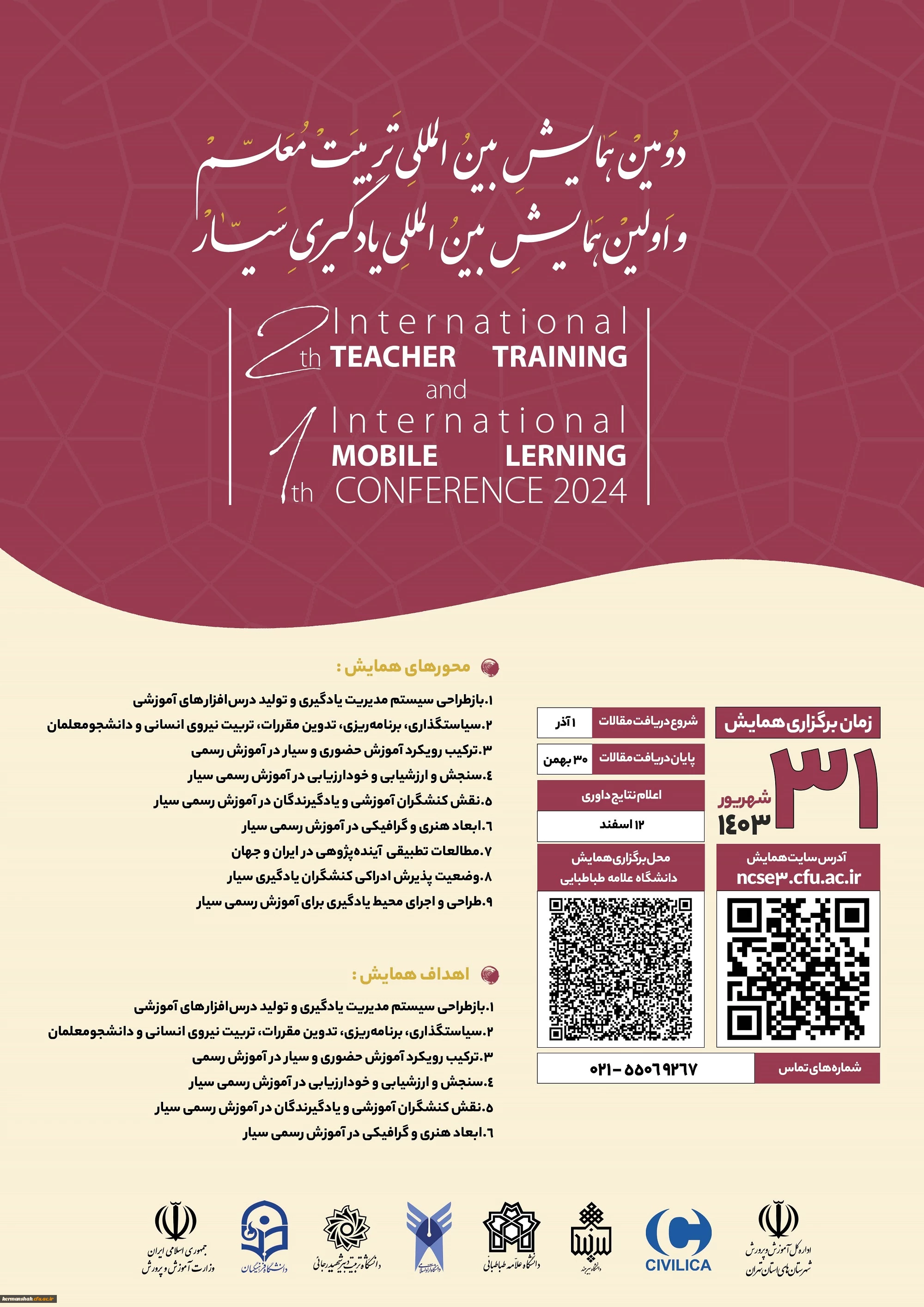 امتیاز دهید : دومین همایش بین المللی تربیت معلم و اولین همایش بین المللی یادگیری سیار 2 شنبه 20 مرداد 1403 ساعت 7:39