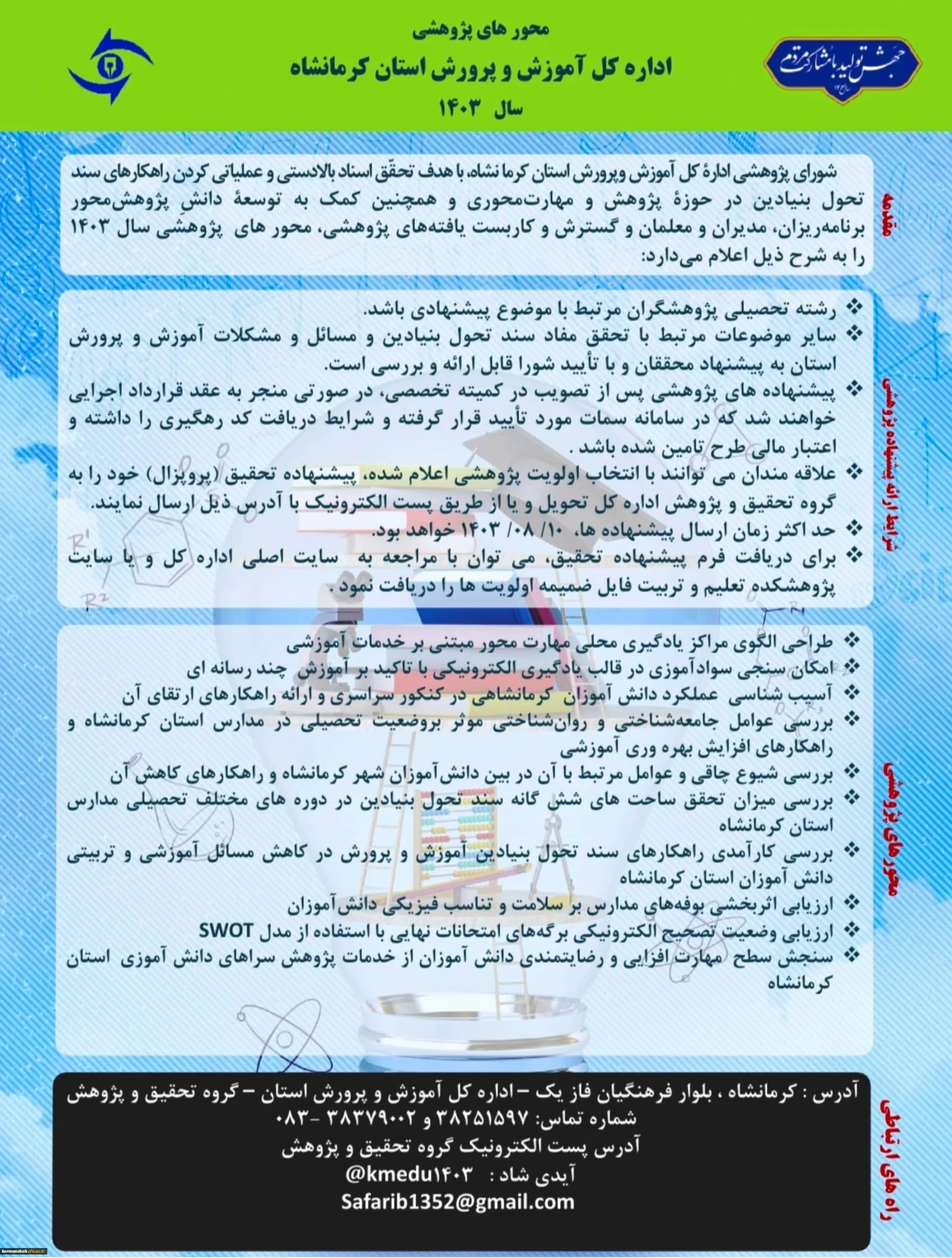 محورهای پژوهشی اداره کل آموزش و پرورش استان کرمانشاه 2