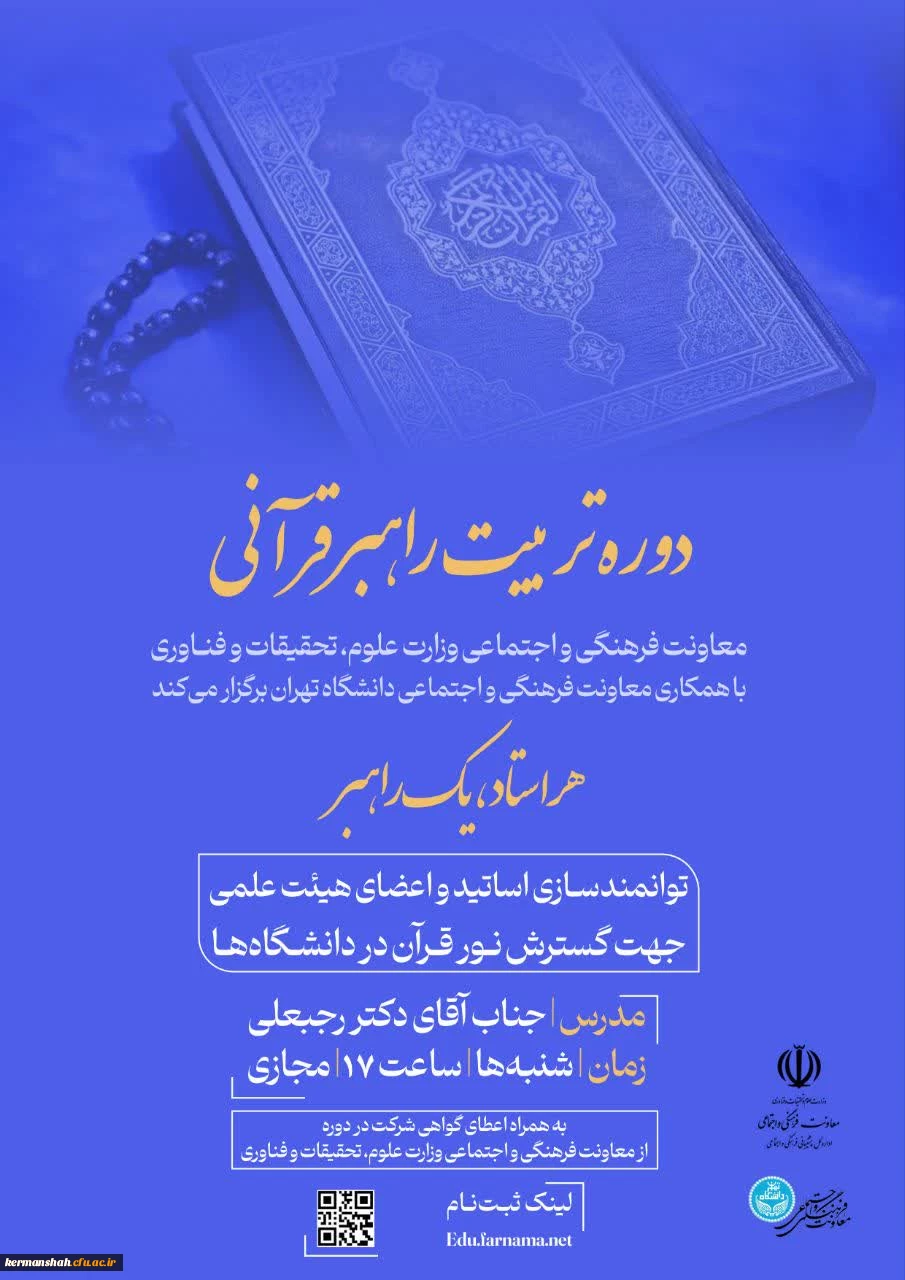 ارسال فراخوان دوره دوم طرح راهبران قرآنی ویژه اساتید و اعضاء هیات علمی
